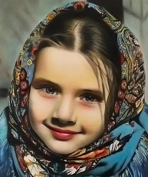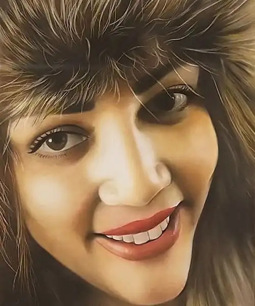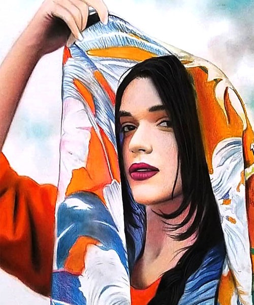 نقاشی رنگی از چهره بعد از طراحی با مداد رنگی